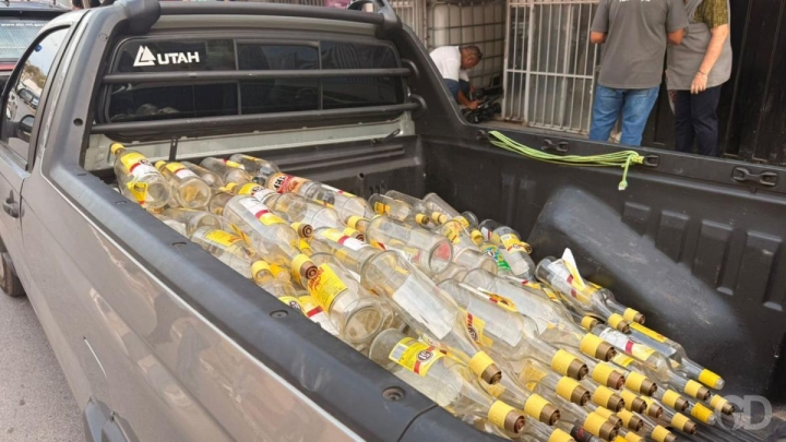 Ao todo, havia mais de 500 garrafas vazias, 30 rolos de rótulos de marcas de bebidas conhecidas no mercado, 3 bombas de mil litros de bebida destilada, além de diversos produtos químicos que dão cor e aroma ao produto falsificado.