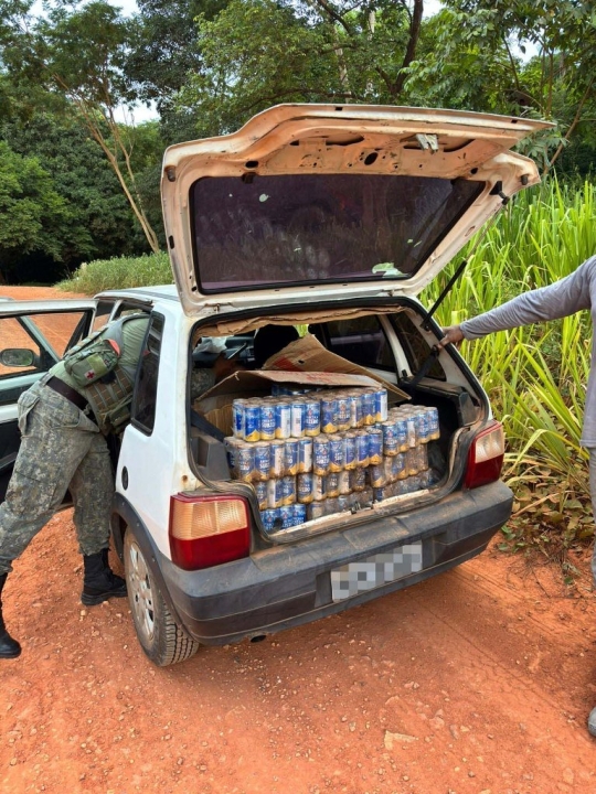 O automóvel era conduzido por um homem de 51 anos, tendo como passageiro um idoso de 66 anos. Durante a busca veicular, as equipes localizaram 38 caixas de cerveja Antártica Sub Zero no interior do veículo. As embalagens estavam sujas de terra, o que levantou fundadas suspeitas quanto à procedência do material.
