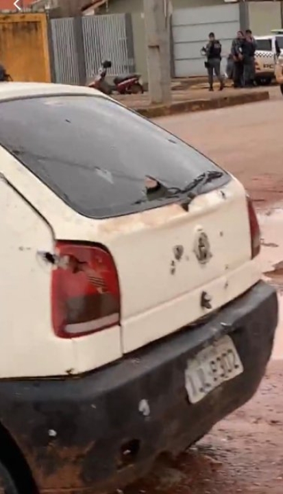 O veículo foi localizado na Avenida dos Estados, momento em que, durante o desembarque tático, os suspeitos passaram a apontar armas de fogo contra as equipes policiais, configurando injusta e iminente agressão.