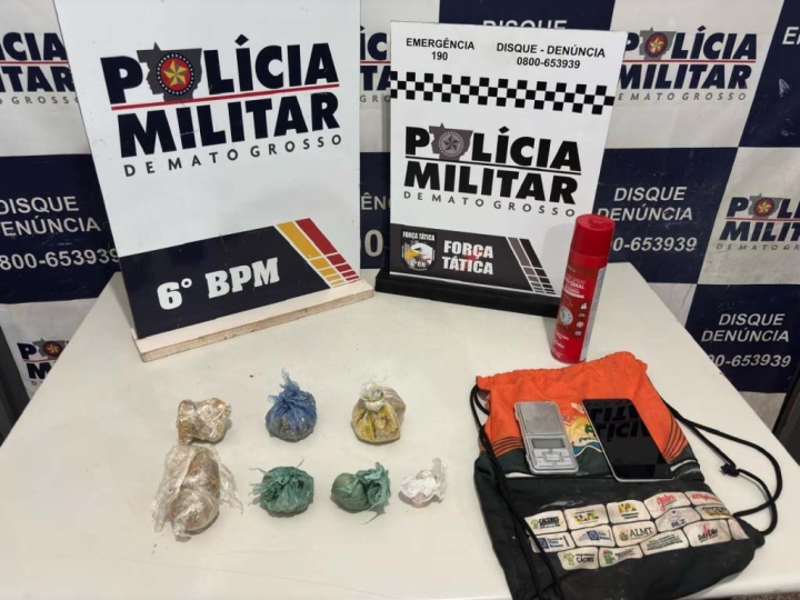 Questionado sobre o material encontrado, o suspeito relatou ser integrante de uma facção criminosa, afirmando que a droga lhe pertencia e que o spray de tinta seria utilizado para pichar muros com a sigla da organização.