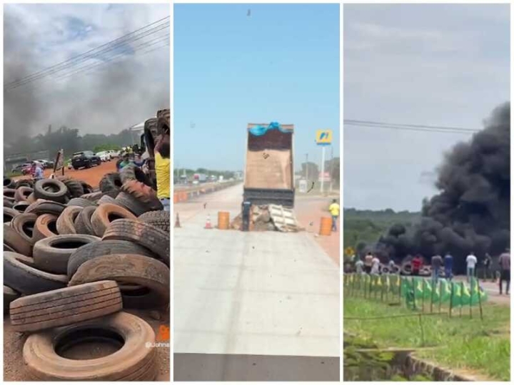Lucas do Rio Verde: o bloqueio é realizado no km 691 da BR-163. Lá a PRF já agiu diversas vezes na desobstrução, mas os manifestantes sempre voltam a bloquear a pista.
