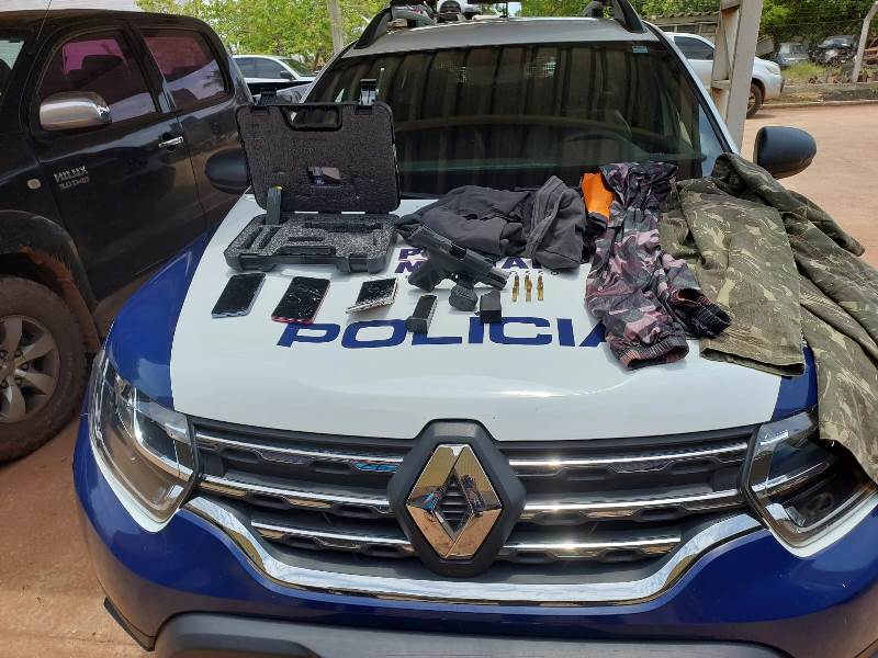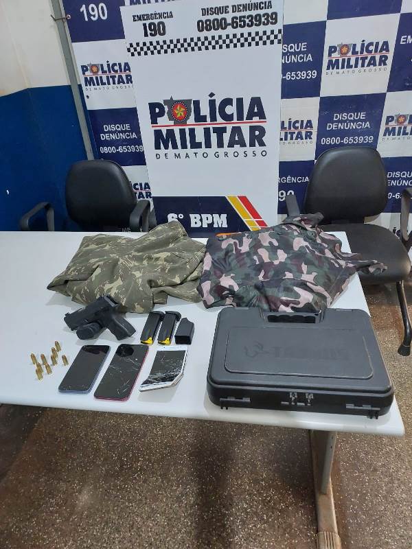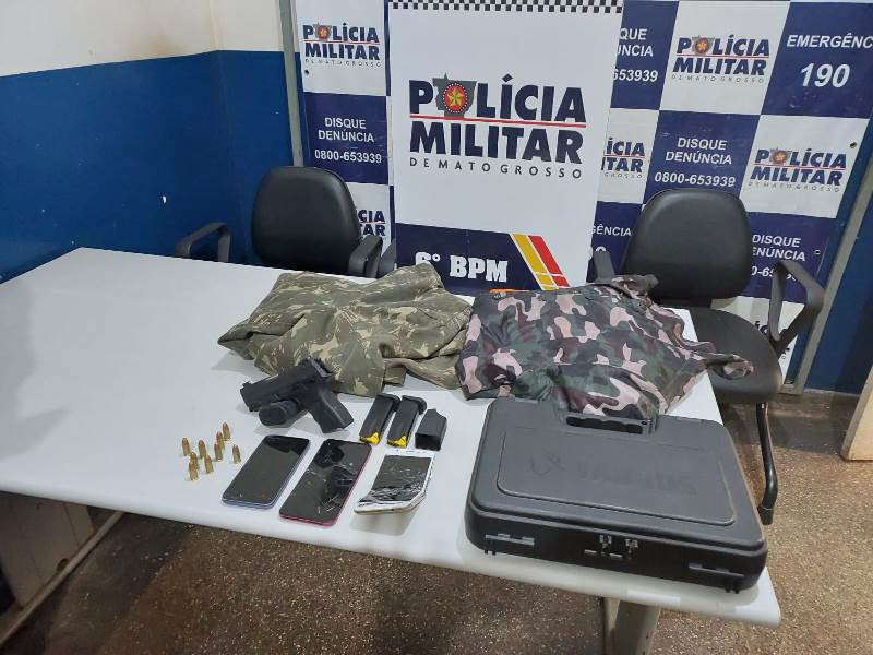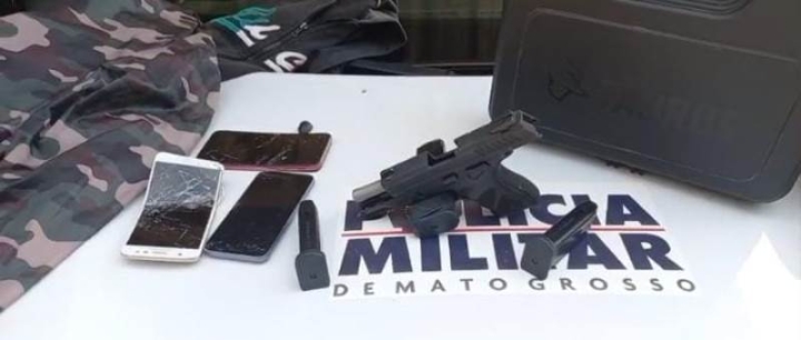 Integrantes de facção são presos pela PM com pistola em residência em Cáceres — Foto: Web