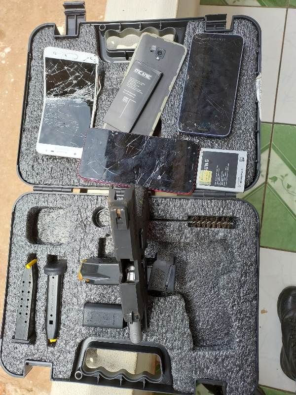 No interior da residência onde estavam foi encontrado a maleta (case) da arma com dois carregadores, o suspeito de iniciais W.S. informou que a referida arma foi deixada no local por um amigo deles (informando o nome pra polícia).