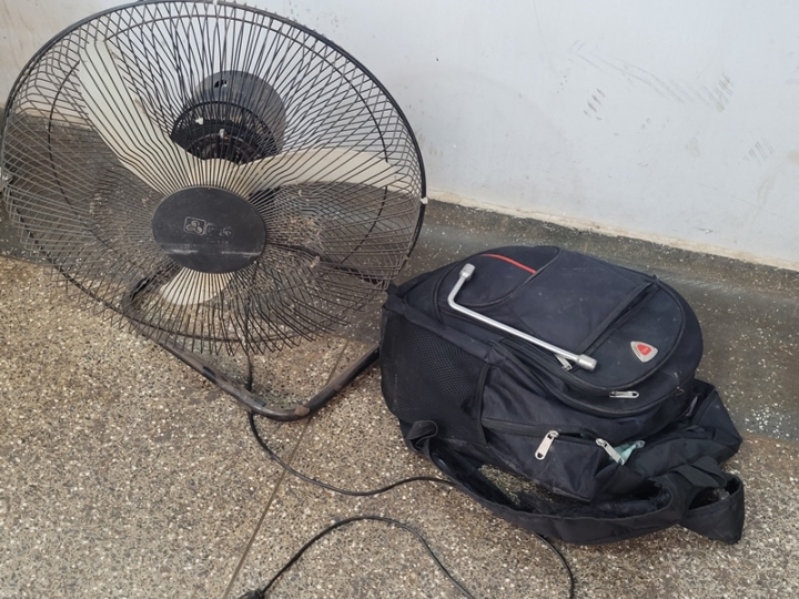 O suspeito de iniciais V.C. de 22 anos foi detido ainda nas imediações com a bicicleta e uma mochila de cor preta, contendo um ventilador e uma chave de rodas.