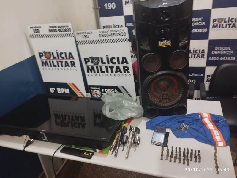 Em buscas pela mata foram localizadas uma caixa de som amplificada e uma TV de 32 Pol.