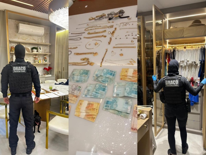 Na ocasião foram cumpridos mandados de prisão temporária e de busca e apreensão na casa do suspeito, sendo apreendidas porções de entorpecentes, além de dinheiro em espécie e instrumento utilizado para o tráfico de drogas.