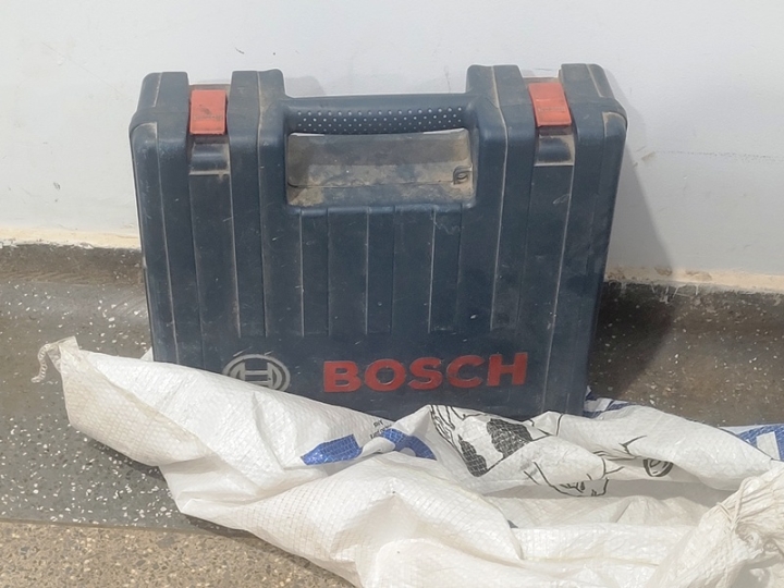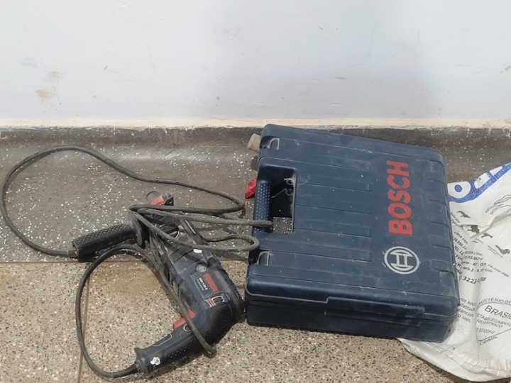 Diante da atitude suspeita a equipe realizou a abordagem ao suspeito de 48 anos, e, no interior do misterioso saco foi encontrada uma maleta contendo um martelete de marca Bosch e várias ferramentas.