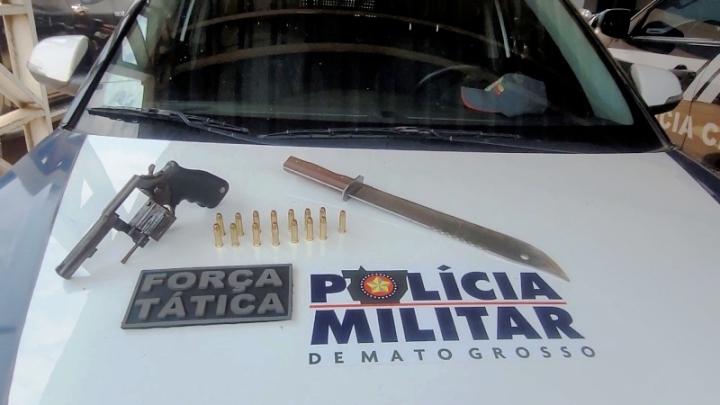Durante a revista pessoal nada de ilícito foi encontrado, entretanto, na revista veicular foi encontrado em cima do banco do motorista um revólver calibre 38, acompanhando com quinze munições intactas do mesmo calibre.