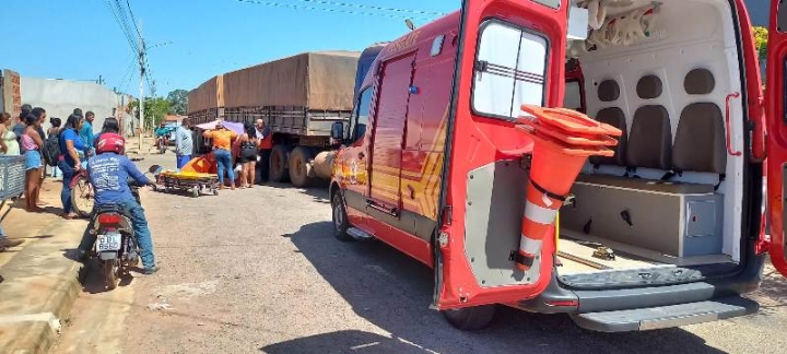 MÃE E FILHO SÃO ATROPELADOS POR CARRETA EM CÁCERES; CRIANÇA TEM PERNA QUEBRADA COM FRATURA EXPOSTA