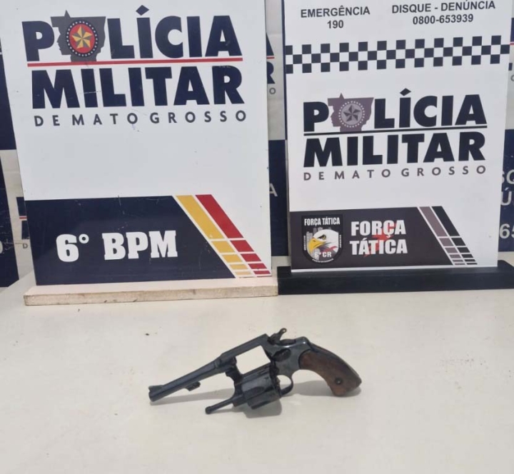 No interior da casa, o suspeito, de 38 anos, foi detido. Durante as buscas, um dos militares encontrou um revólver calibre .32, sem munições.