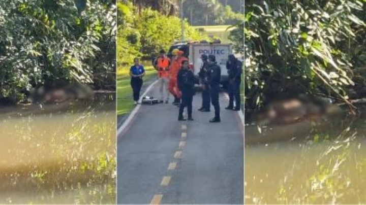 Durante varredura nas imediações, foi encontrada uma motocicleta Honda Strada, de cor vermelha, registrada no município.